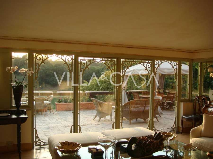В одному з найпрестижніших і охоронюваних житлових комплексів на півночі Риму, в районі Due Ponti / Corso Francia, поруч з 18-лунковим гольф-клубом Parco di Roma, пропонується в оренду виняткова історична вілла площею близько 700 м², розташована на п'яти рівнях з терасами і приватними зовнішніми просторами.