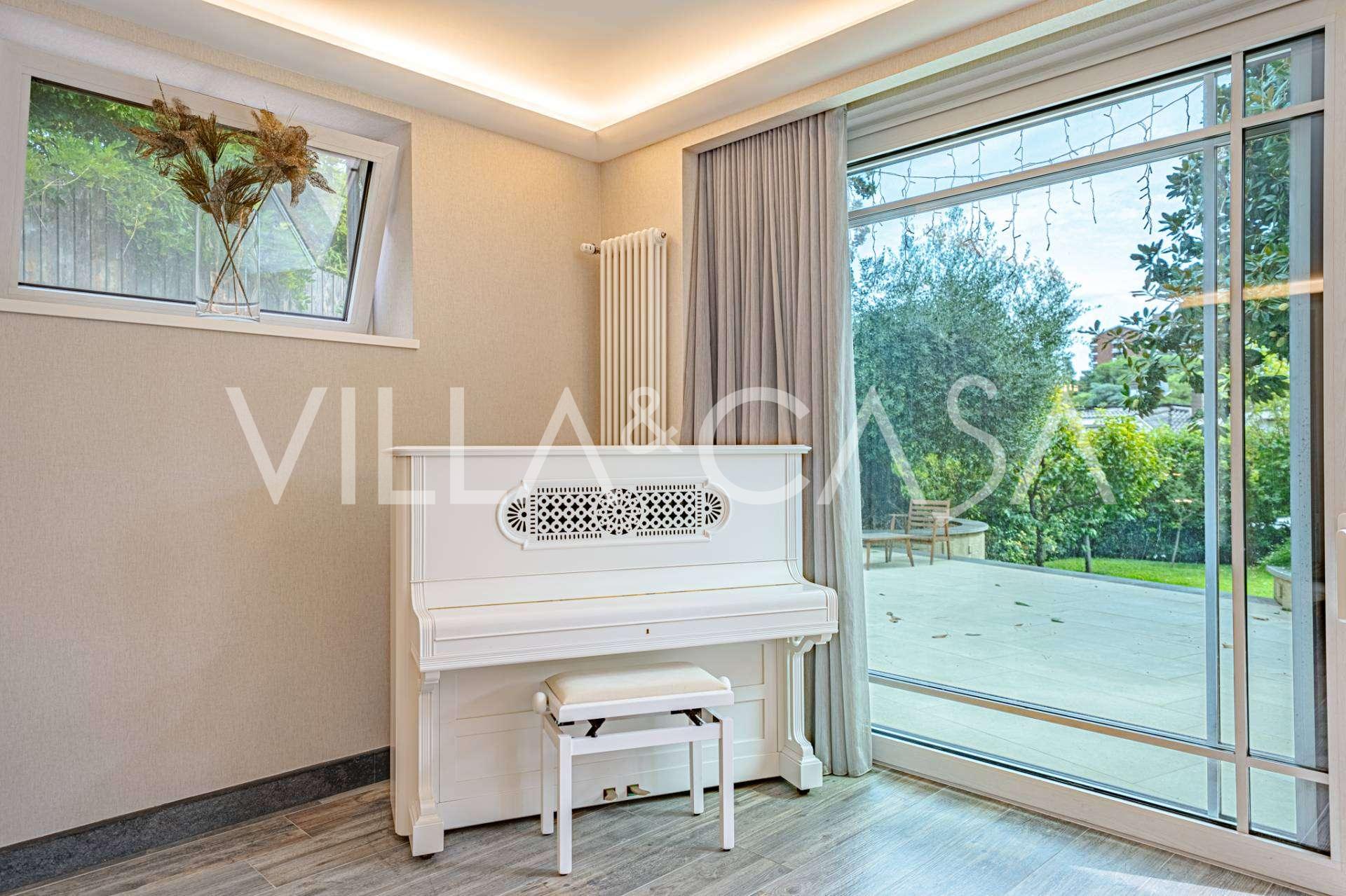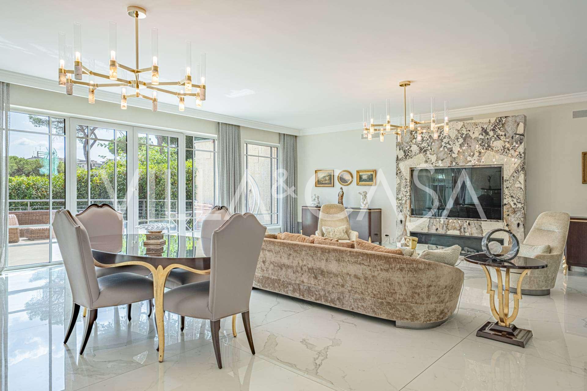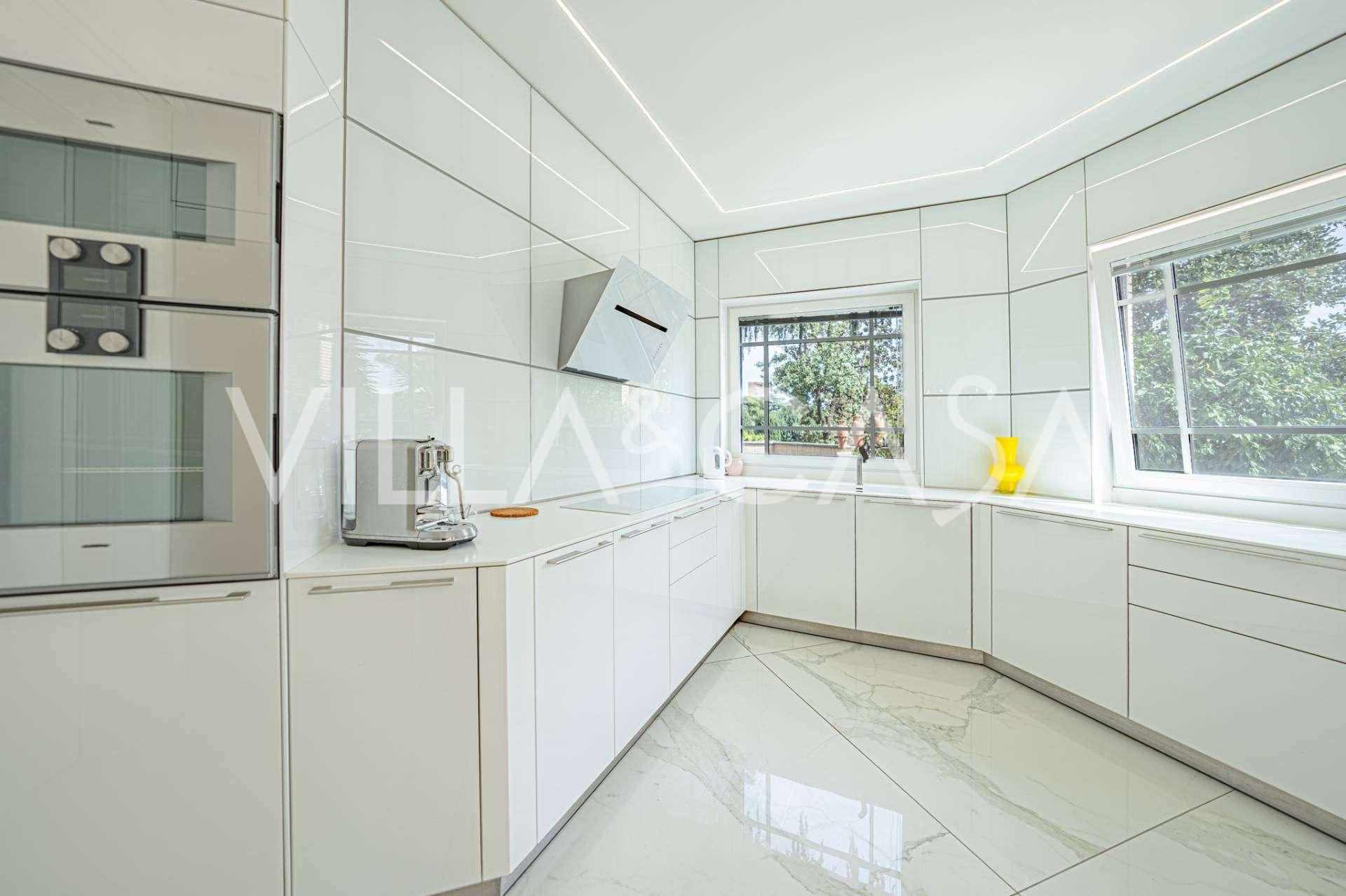 На одній з найпрестижніших вулиць в районі EUR розташована вишукана резиденція, повністю оновлена у 2020 році. Ця вілла поєднує в собі витончену естетику, сучасний дизайн і високий рівень комфорту, створюючи простір, що підходить для найвибагливіших цінителів.