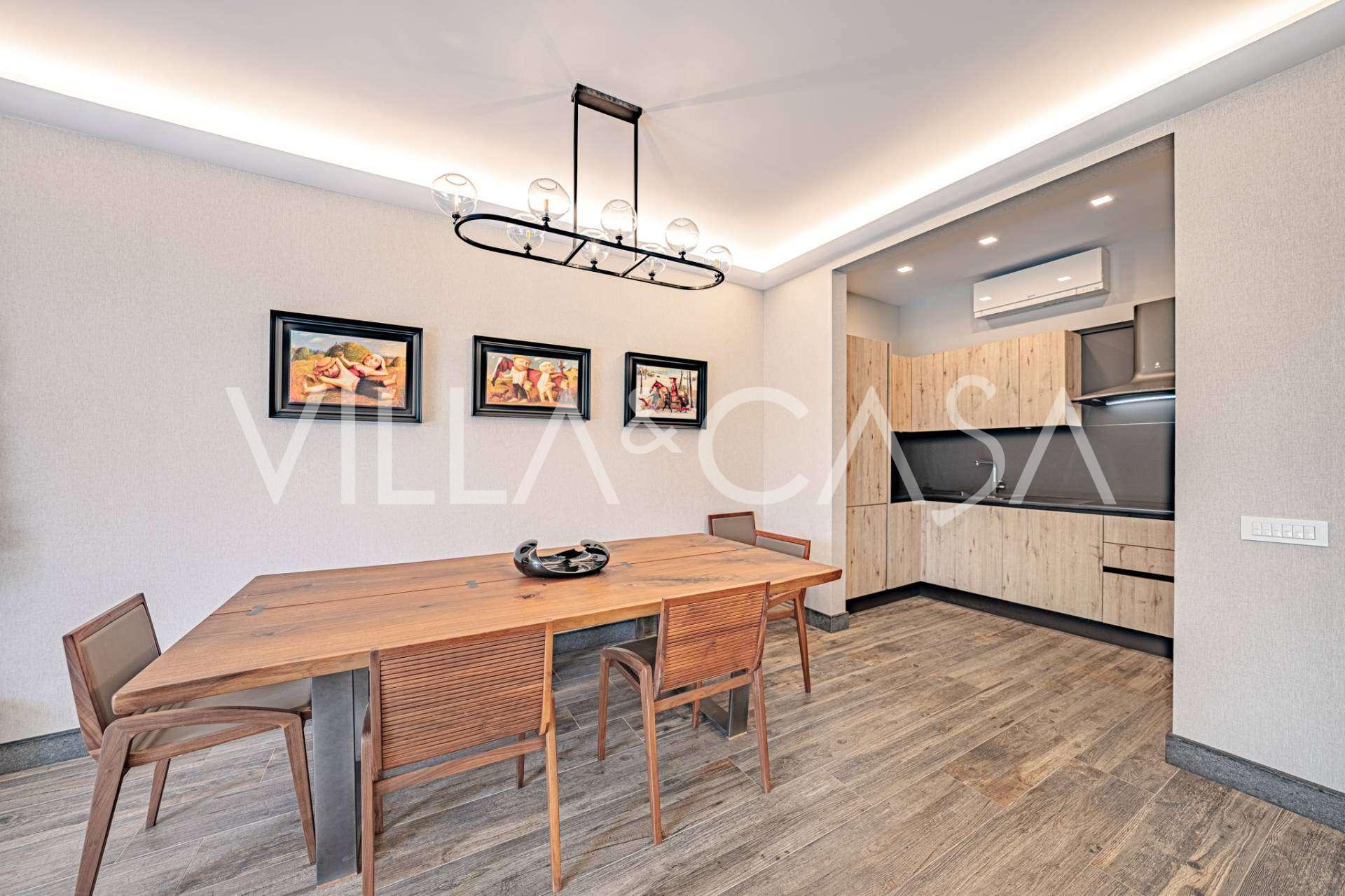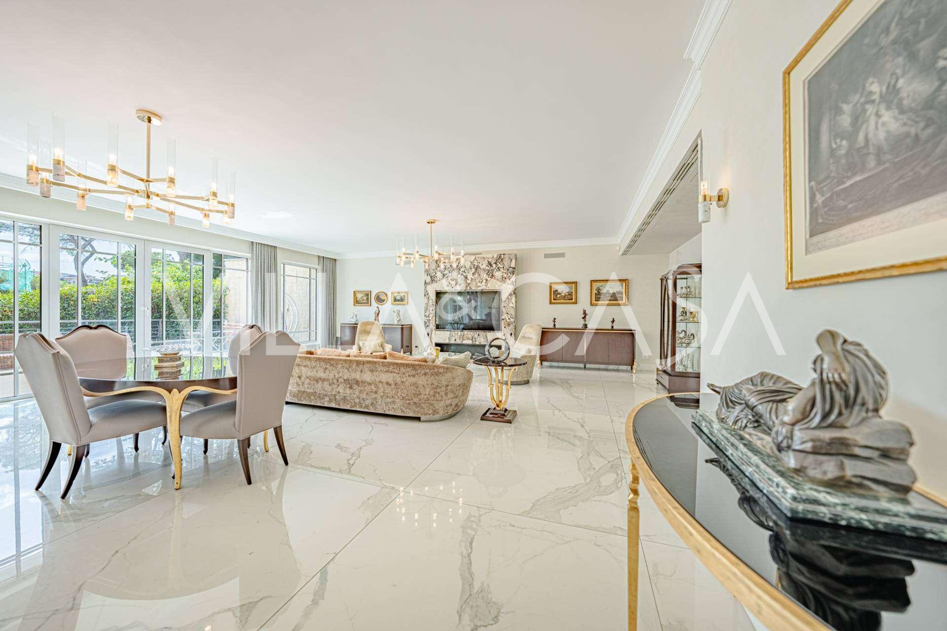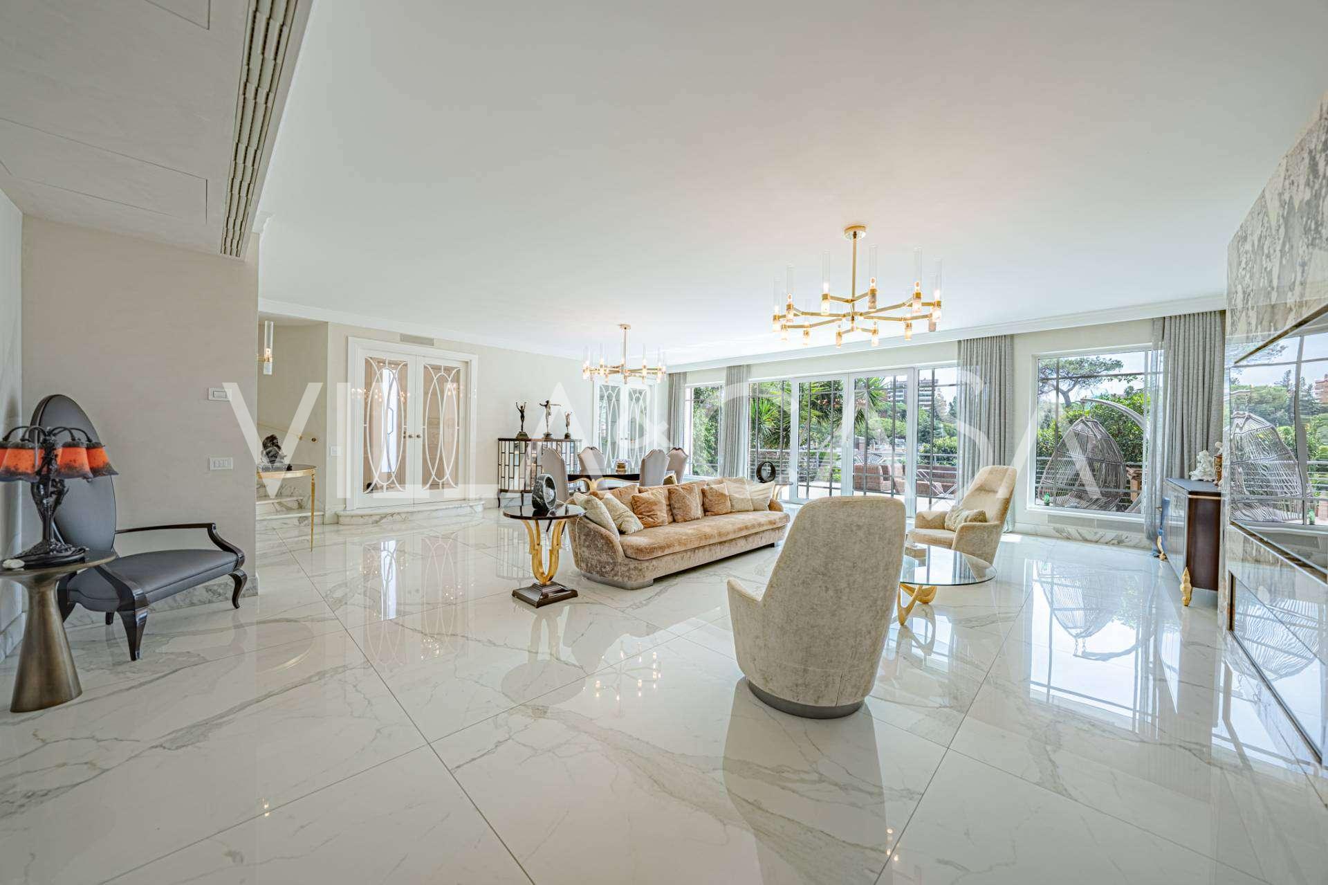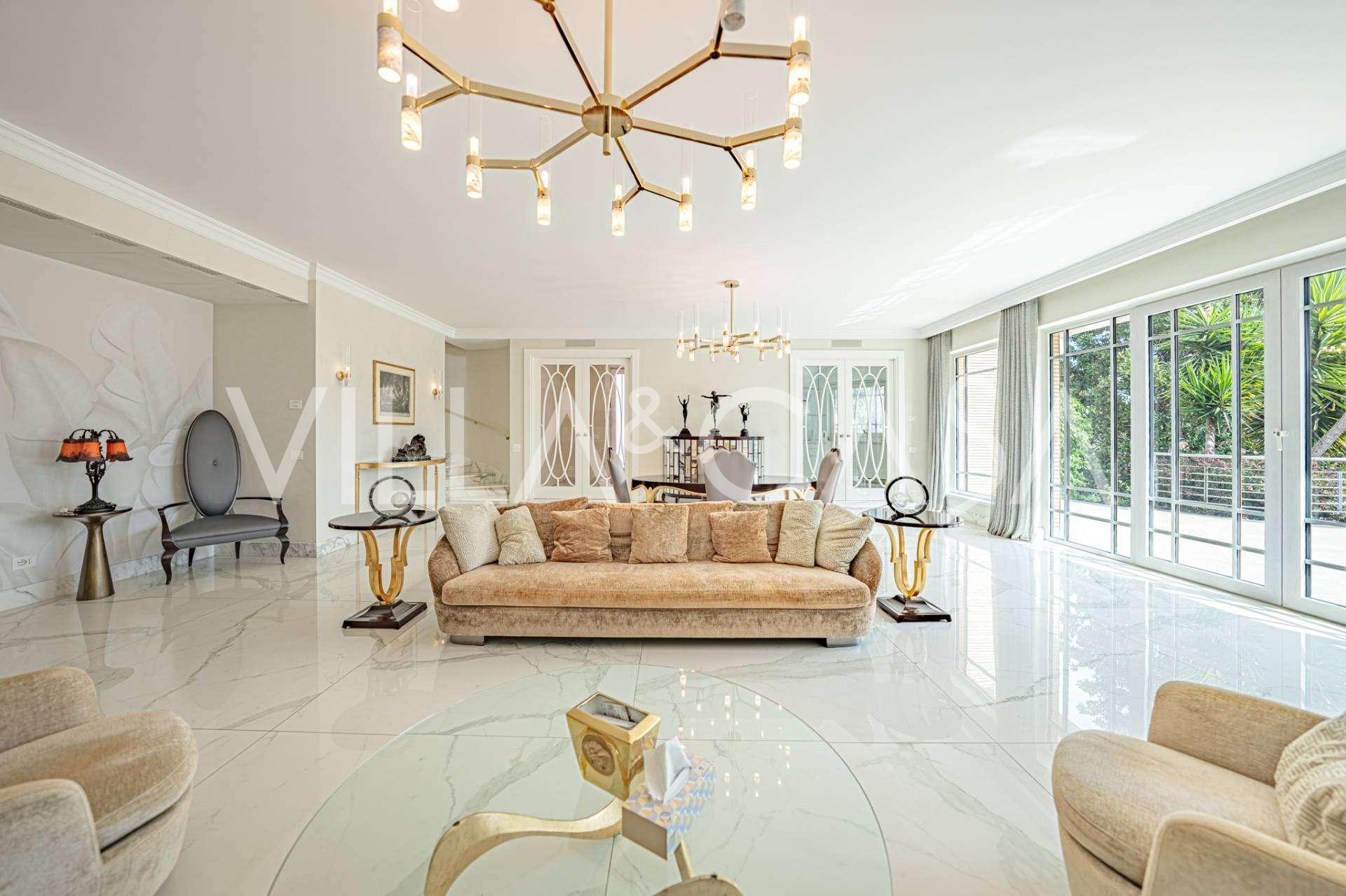 На одній з найпрестижніших вулиць в районі EUR розташована вишукана резиденція, повністю оновлена у 2020 році. Ця вілла поєднує в собі витончену естетику, сучасний дизайн і високий рівень комфорту, створюючи простір, що підходить для найвибагливіших цінителів.