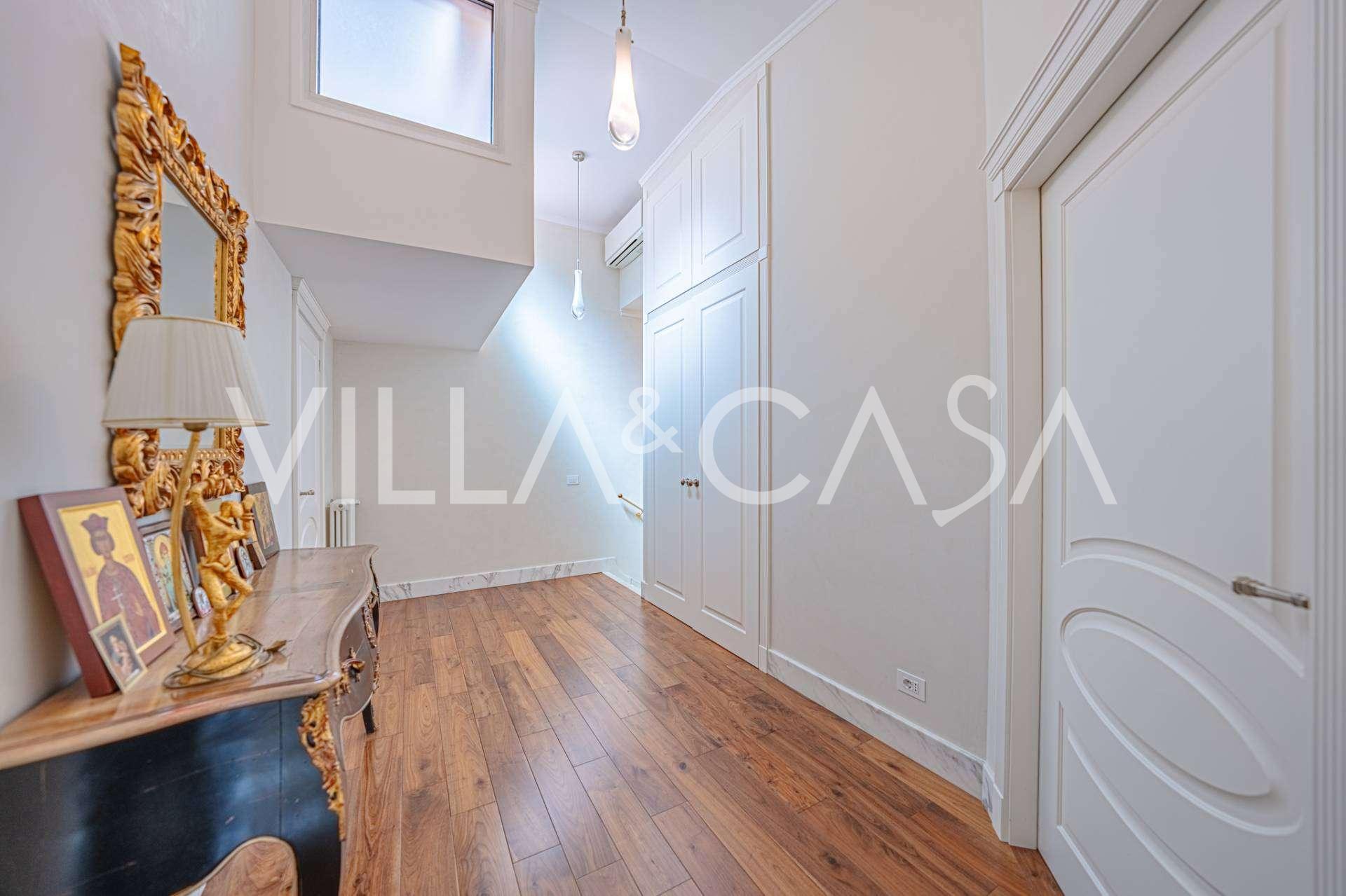 Триповерхова резиденція займає панівну позицію на Віа Марокко з південною сонячною експозицією, оточена зеленню і відкриває захоплюючі види на сади. Історичний стиль гармонійно поєднується з інноваційними технологіями і ретельно продуманою ергономікою внутрішнього простору.