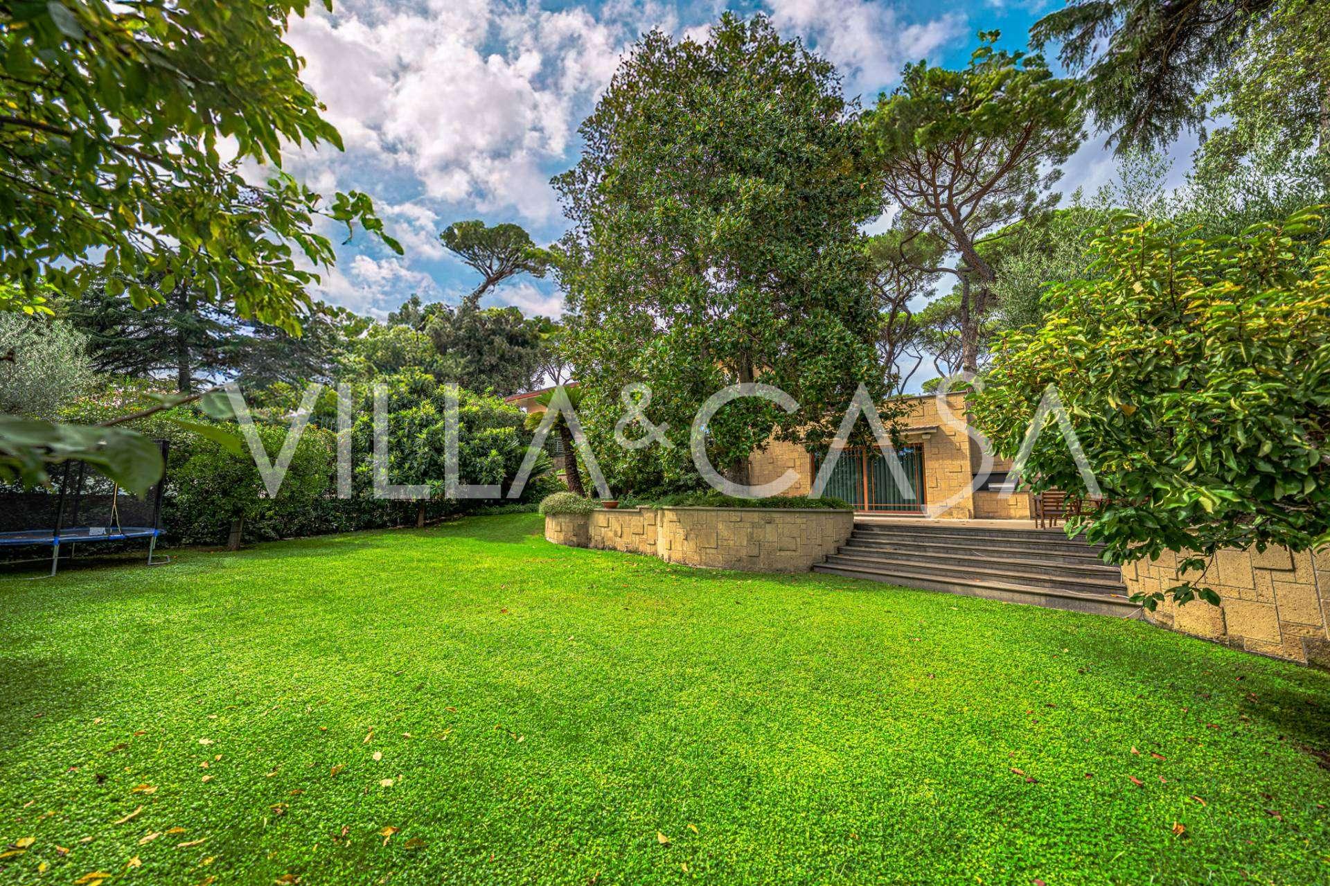 Ландшафтний сад, створений з особливою увагою до деталей, прикрашений рідкісними породами дерев, серед яких велична магнолія і столітня олива. Парадний двір вміщує кілька автомобілів, а також є закритий гараж на одну машину. Ідеальне розташування резиденції поєднує рідкісну тишу і стратегічне місцезнаходження: в пішій доступності знаходяться основні сервіси і зручний виїзд до парку з озером EUR, а також до проспектів Лаурентина і Крістофоро Коломбо. Лише за кілька хвилин можна дістатися до центру Риму.