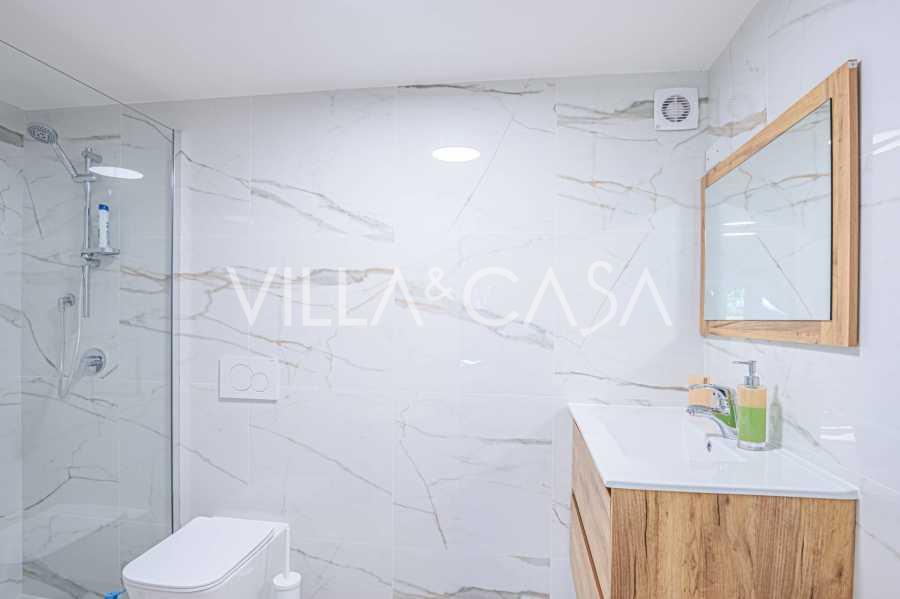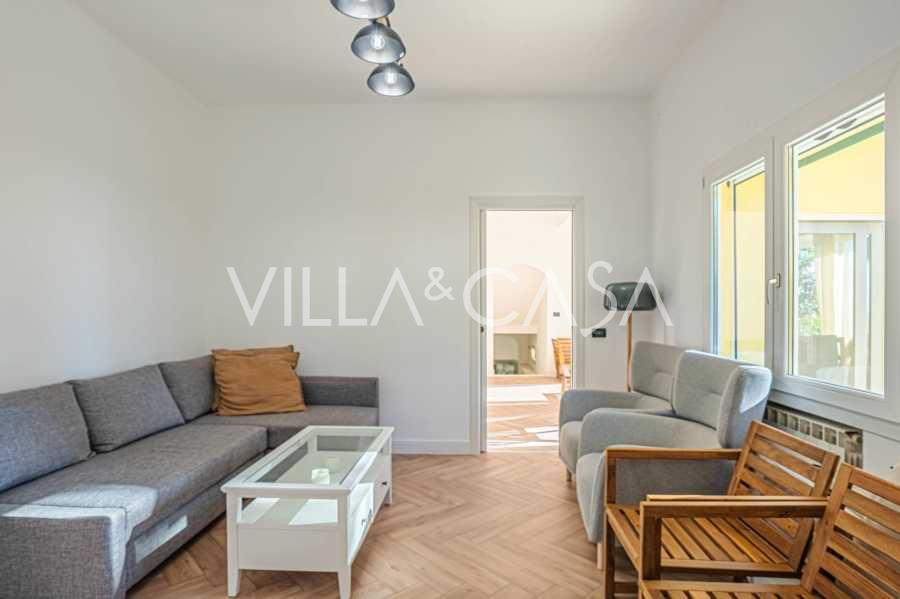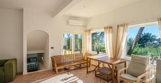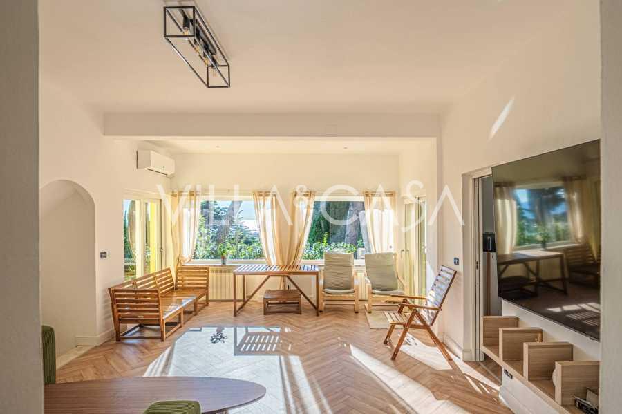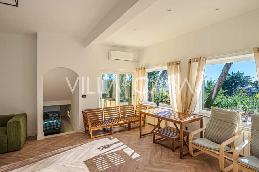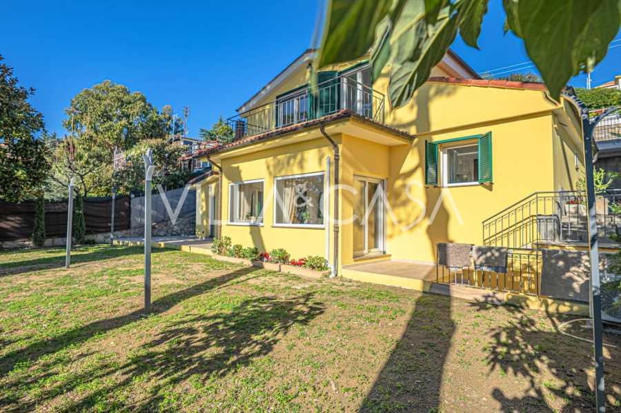 Територія вілли потопає в зелені: доглянутий сад з декоративними рослинами та квітами, зона відпочинку на свіжому повітрі, а також приватна парковка на три машини. Нещодавня реновація додала дому сучасність і свіжість, зберігаючи при цьому середземноморську елегантність.