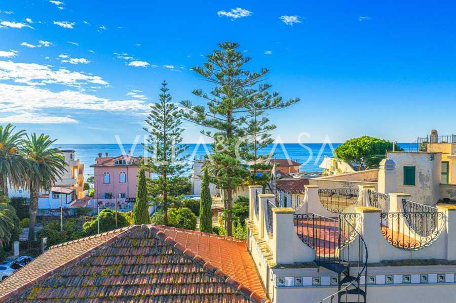 Всього за сто метрів від лазурового узбережжя Тірренського моря, в престижному курорті Санта-Марінелла, розташована чудова вілла площею 153 м2, яка втілює в собі елегантний італійський морський стиль. Ця вишукана резиденція з панорамним видом на море розміщена на двох рівнях і ідеально поєднує затишок, комфорт і атмосферу спокійного відпочинку біля моря.