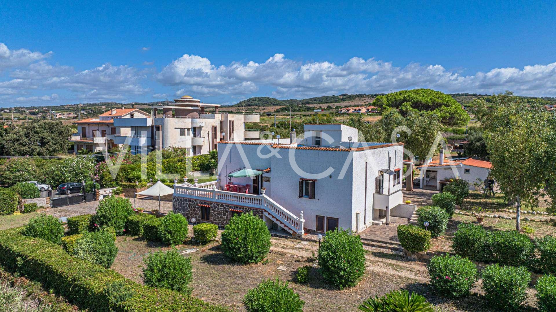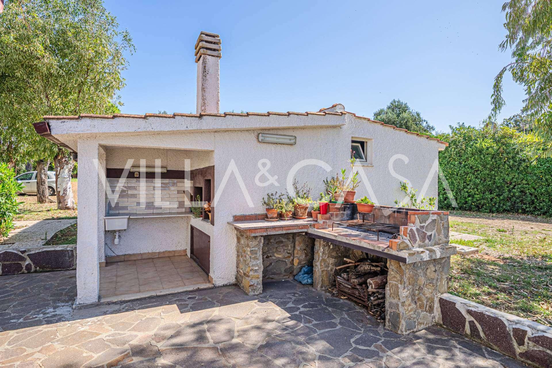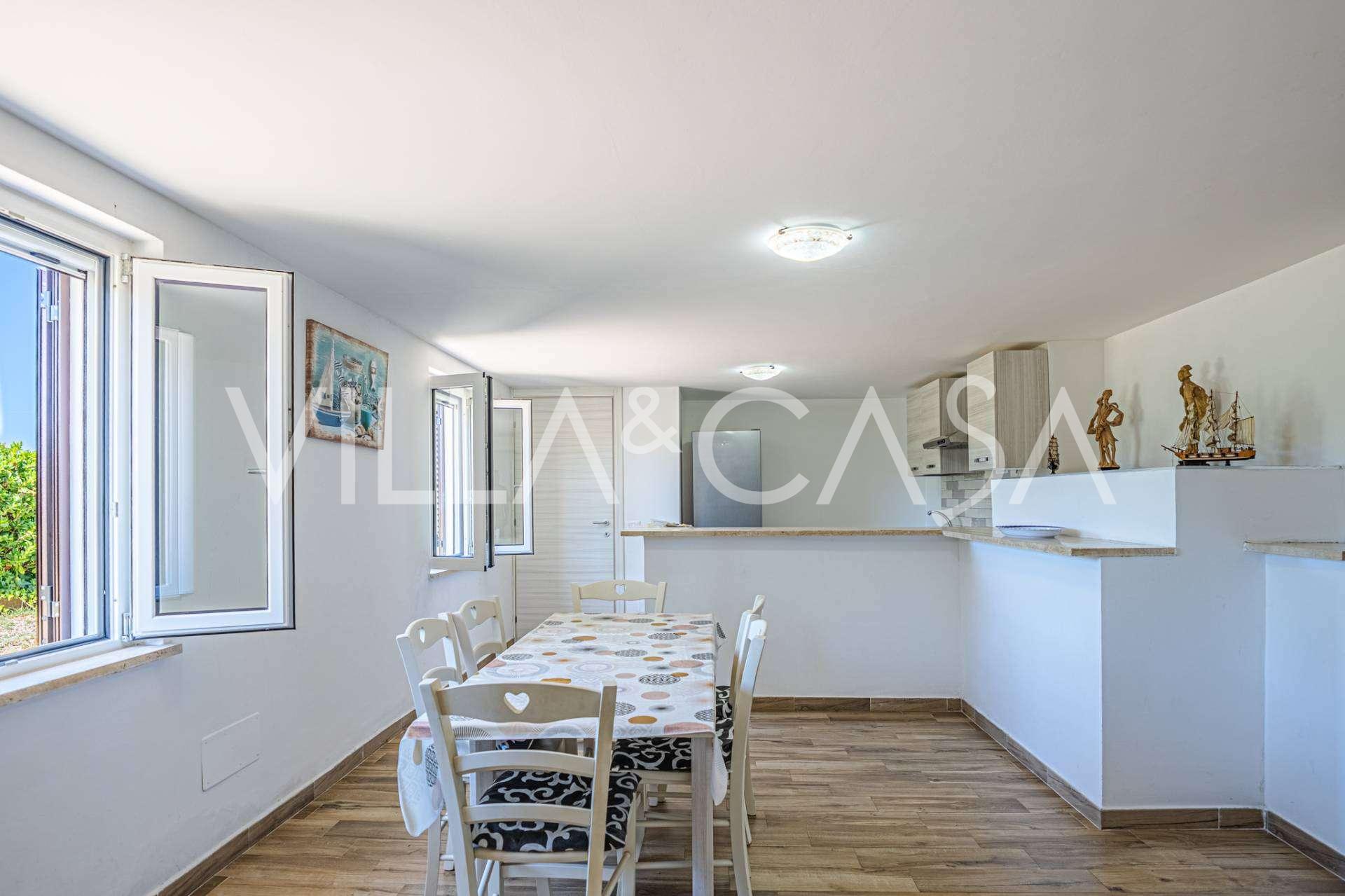 Доповнюють резиденцію допоміжні споруди: окрема будівля з ванною кімнатою, міні-кухнею, дров'яною піччю, пральнею та кладовою, а також незалежний апартамент площею близько 24 кв. м з власною спальнею, ванною кімнатою та міні-кухнею. Його прикрашає дерев'яна альтанка площею близько 100 кв. м з навісом, звідки відкривається мальовничий вид на море. Апартамент відрізняється усамітненням та відмінною інсоляцією, має два в'їзди з автоматичними воротами, знаходиться в бездоганному стані, повністю мебльований і оснащений кондиціонерами та фотоелектричною системою.