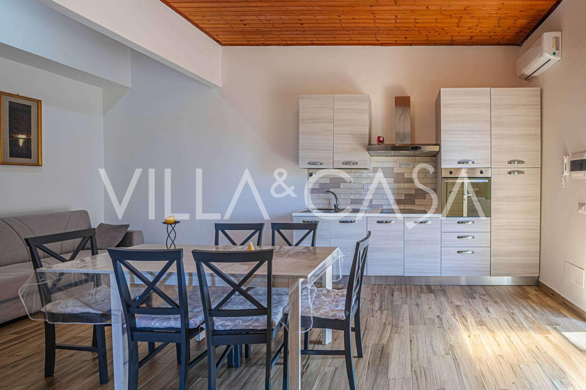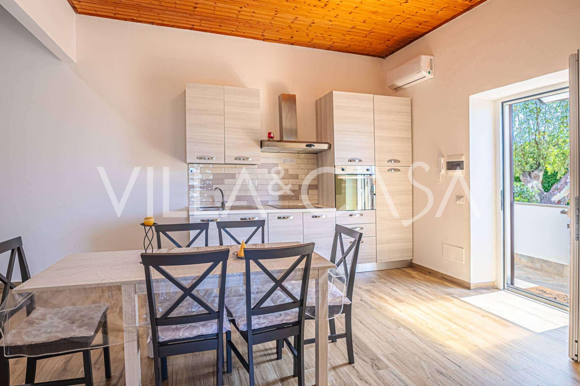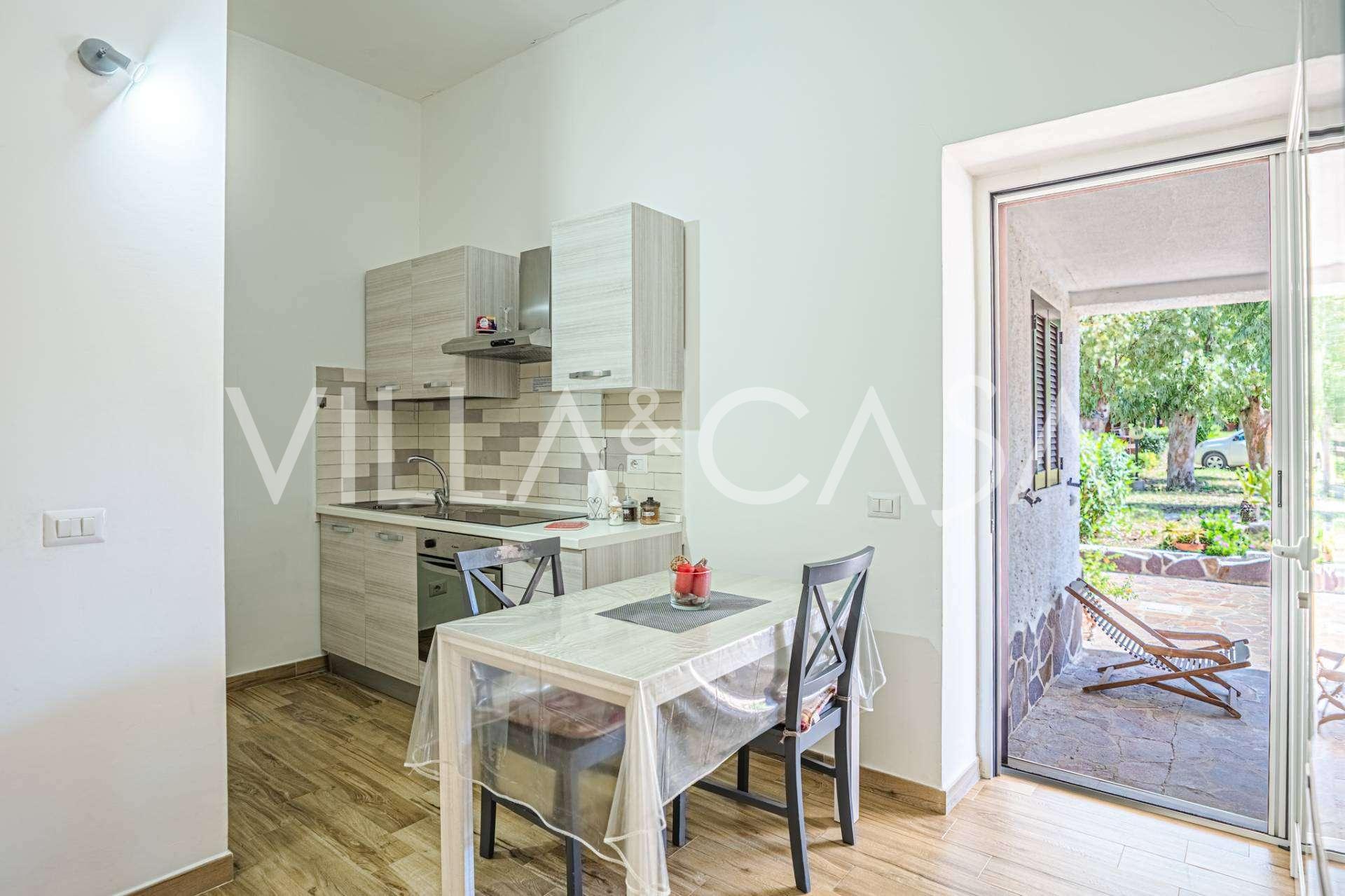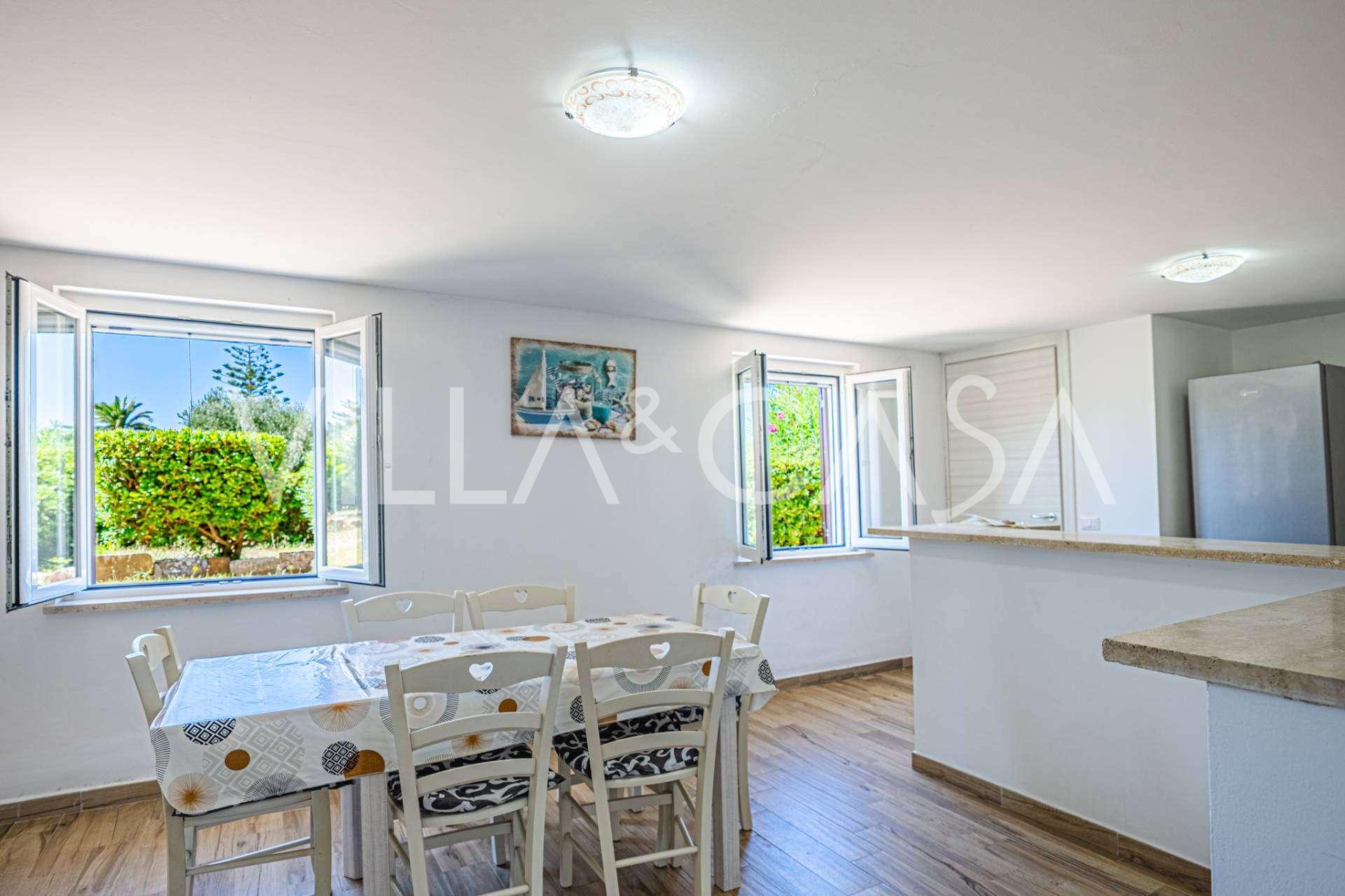 Доповнюють резиденцію допоміжні споруди: окрема будівля з ванною кімнатою, міні-кухнею, дров'яною піччю, пральнею та кладовою, а також незалежний апартамент площею близько 24 кв. м з власною спальнею, ванною кімнатою та міні-кухнею. Його прикрашає дерев'яна альтанка площею близько 100 кв. м з навісом, звідки відкривається мальовничий вид на море. Апартамент відрізняється усамітненням та відмінною інсоляцією, має два в'їзди з автоматичними воротами, знаходиться в бездоганному стані, повністю мебльований і оснащений кондиціонерами та фотоелектричною системою.