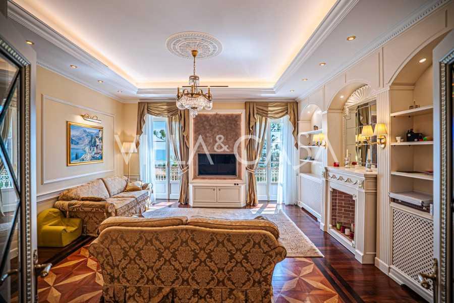 Апартаменти площею 196 м² займають весь другий поверх, перевершуючи стандартні розміри, і відрізняються архітектурною витонченістю та розкішшю простору. Великий хол, прикрашений натуральним мармуром і ексклюзивними декоративними панелями, елегантно розділяє приватну та гостьову зони. З головного коридору відкриваються вітражні двері в елегантну вітальню, серце дому, наповнене світлом і чарівністю, з виходом на панорамну терасу з видом на безкрає море та прекрасні заходи сонця.