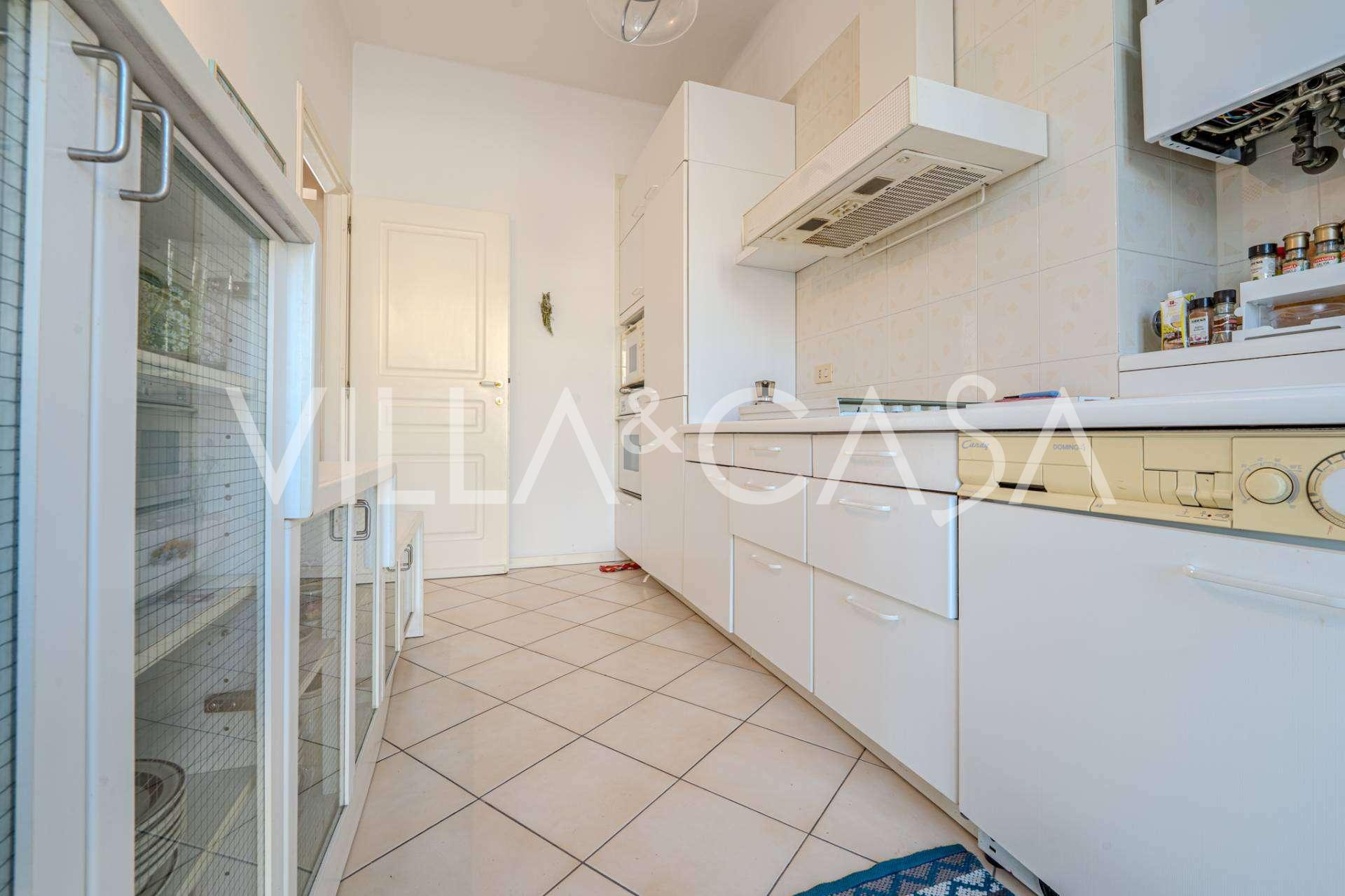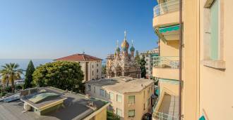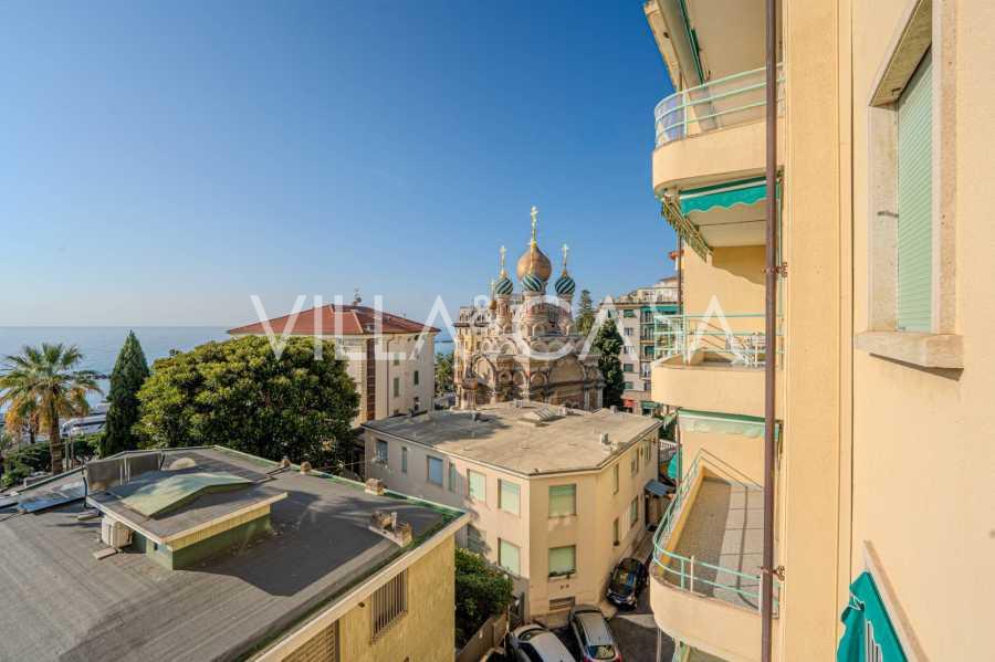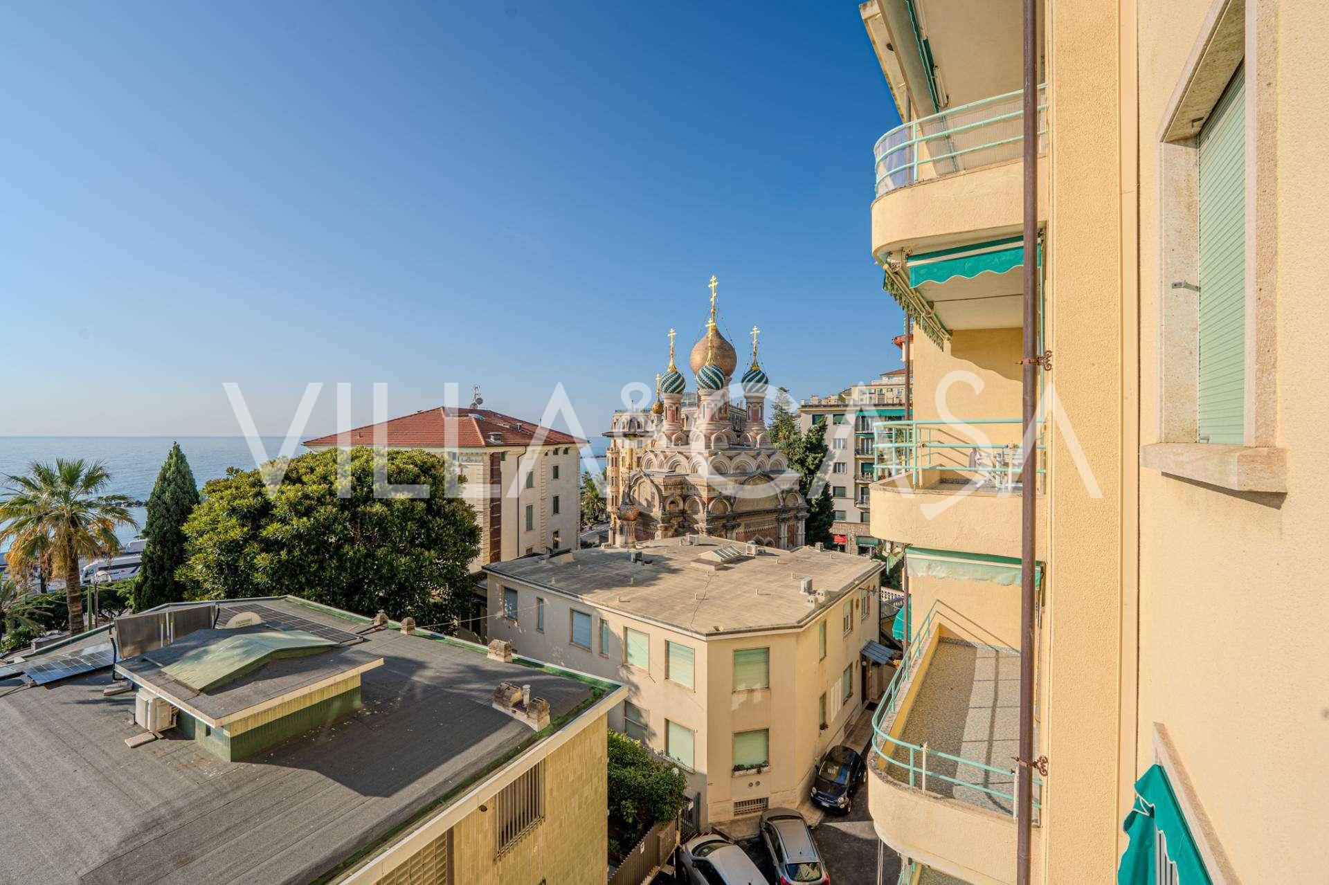 Простора чотирикімнатна квартира розташована в центрі Санремо, навпроти прекрасної Російської церкви, у престижному житловому комплексі з доглянутою територією. Квартира займає 104 м2 і знаходиться на четвертому поверсі, звідки відкривається вид на море та унікальну архітектуру Російської церкви.