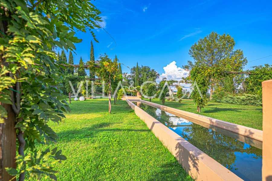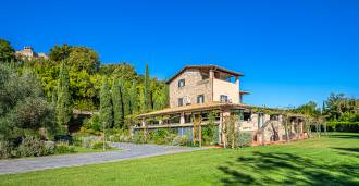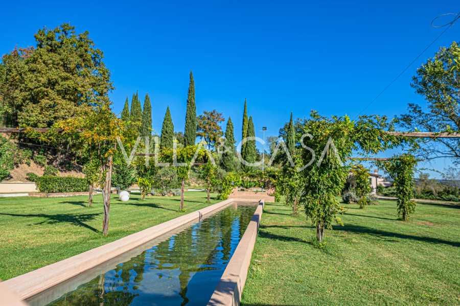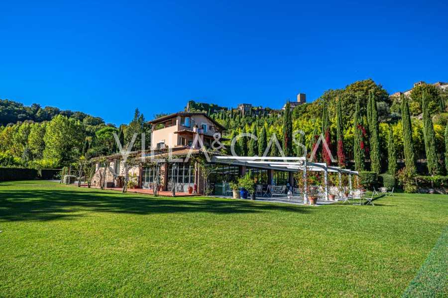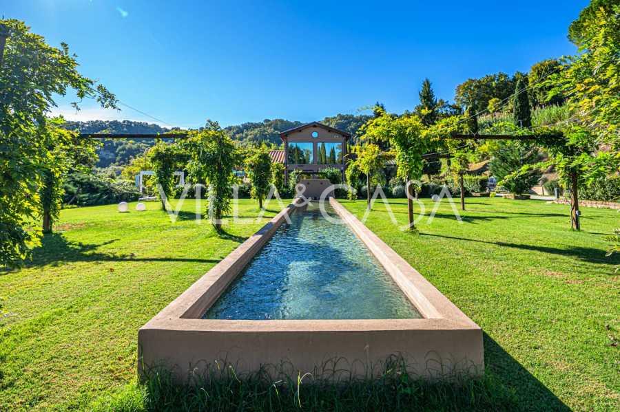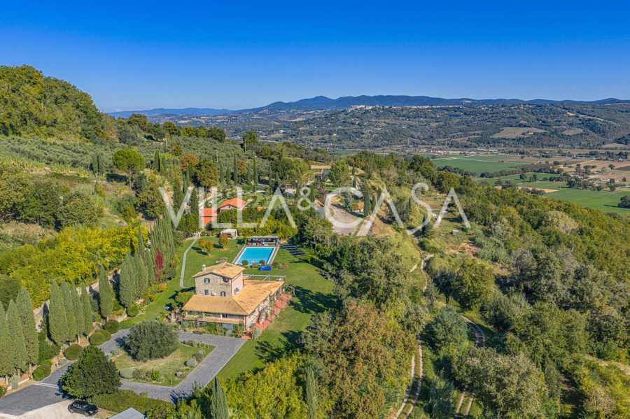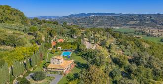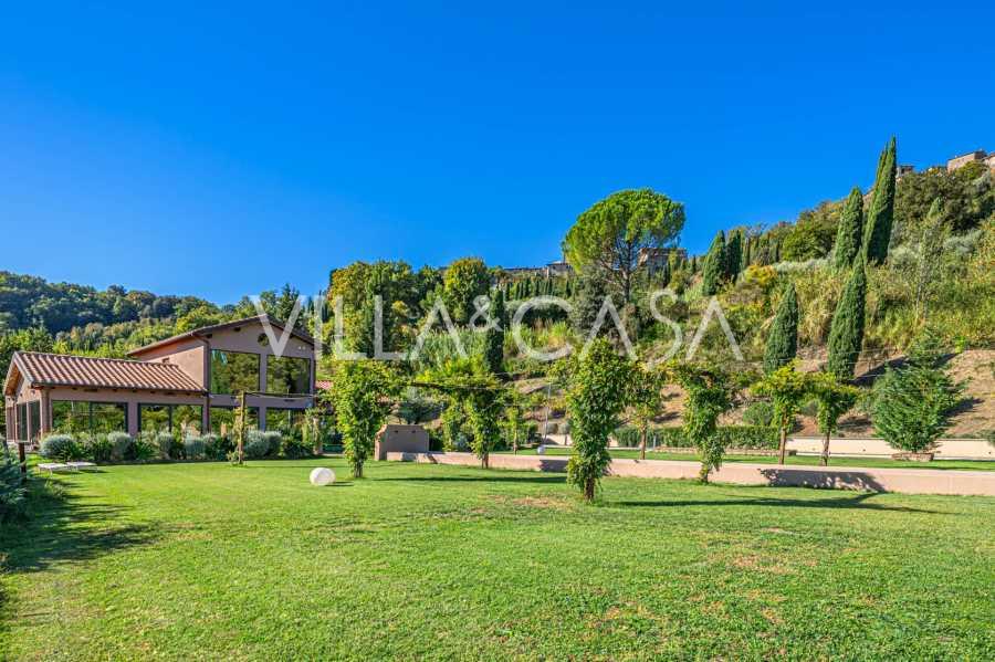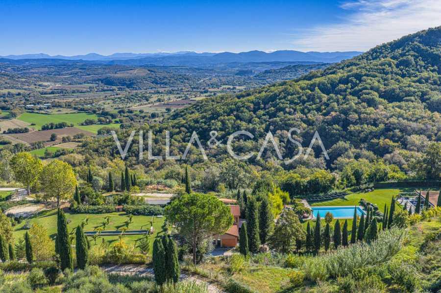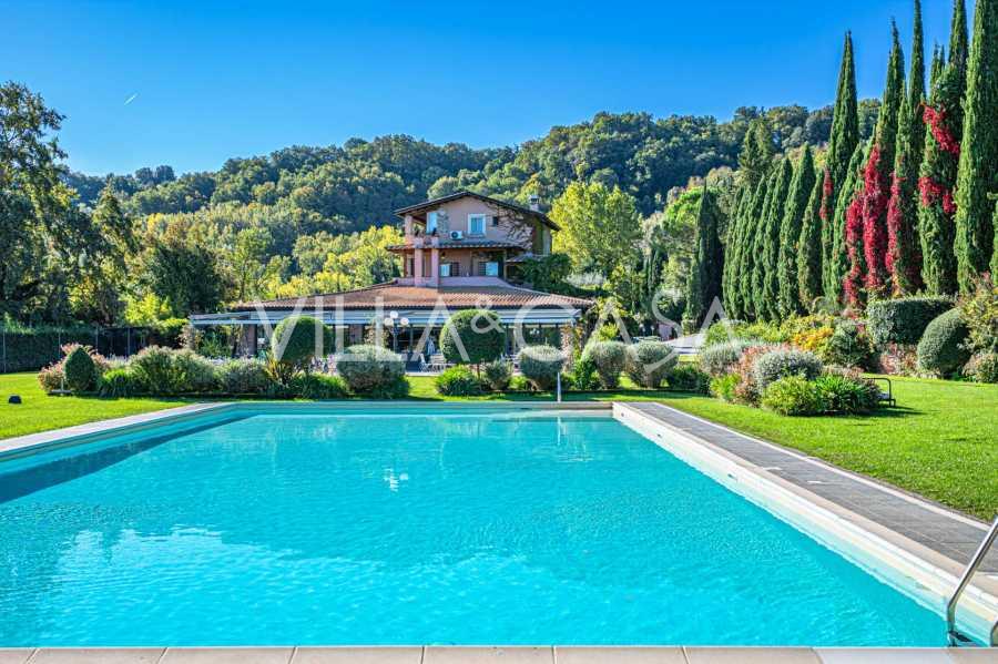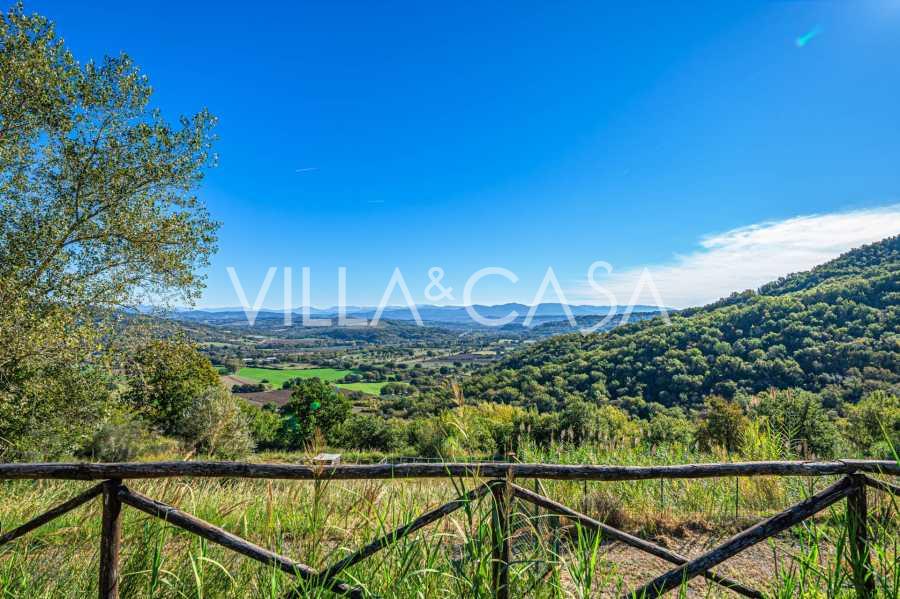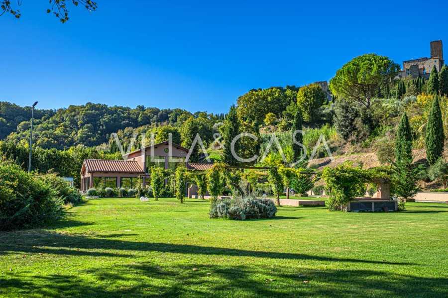 У провінції Вітербо, на височині пагорбів, відкривається приголомшливий вид на долину Тибру. Маєток займає близько 25 гектарів доглянутого парку, створюючи атмосферу повного спокою та усамітнення. Кожен куточок спроектований для комфорту, елегантності та гармонії: сонячні тераси, альтанки, витончені шезлонги біля басейну та тінисті алеї, оточені віковими деревами.