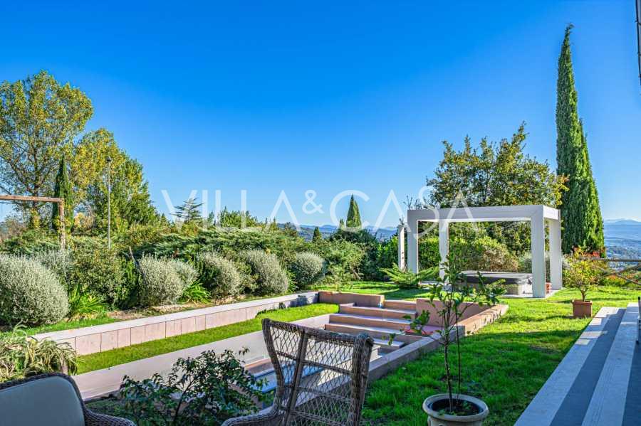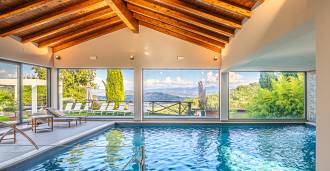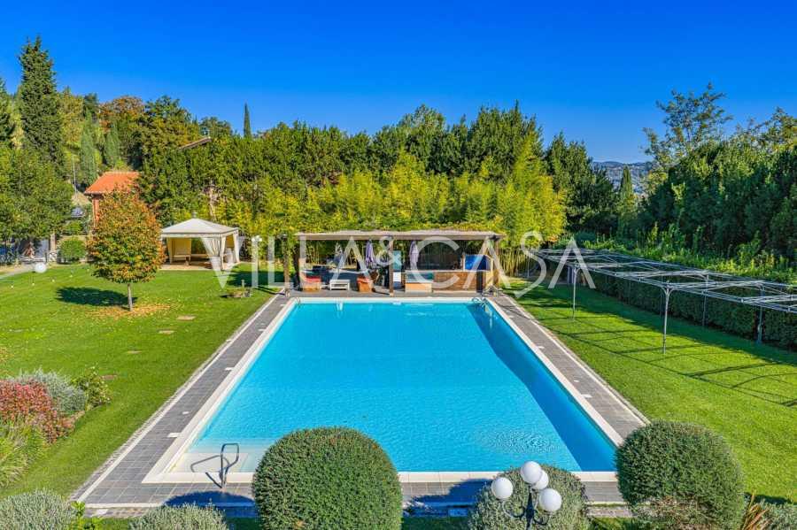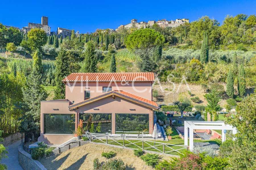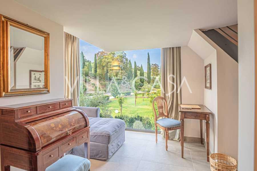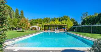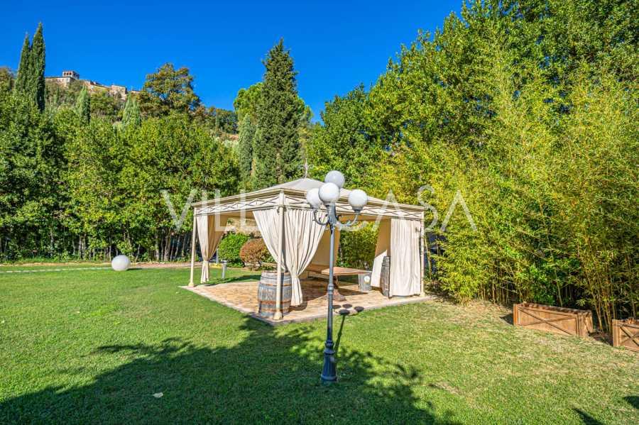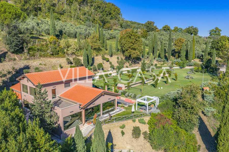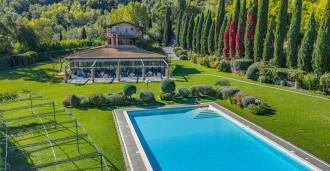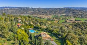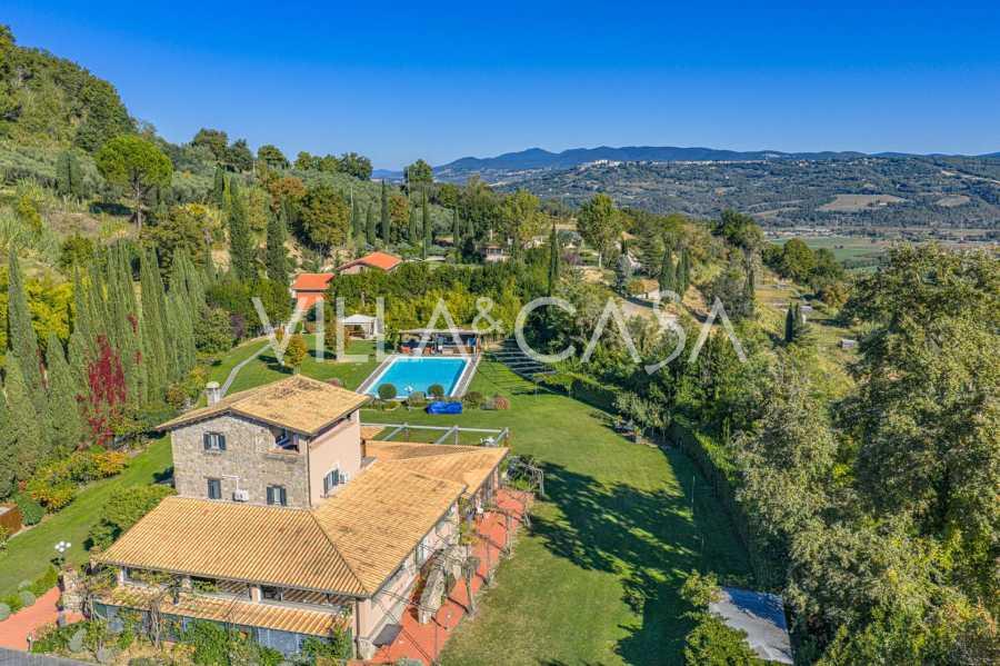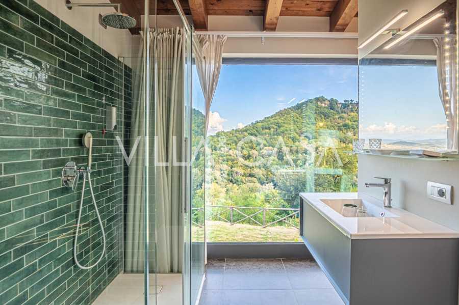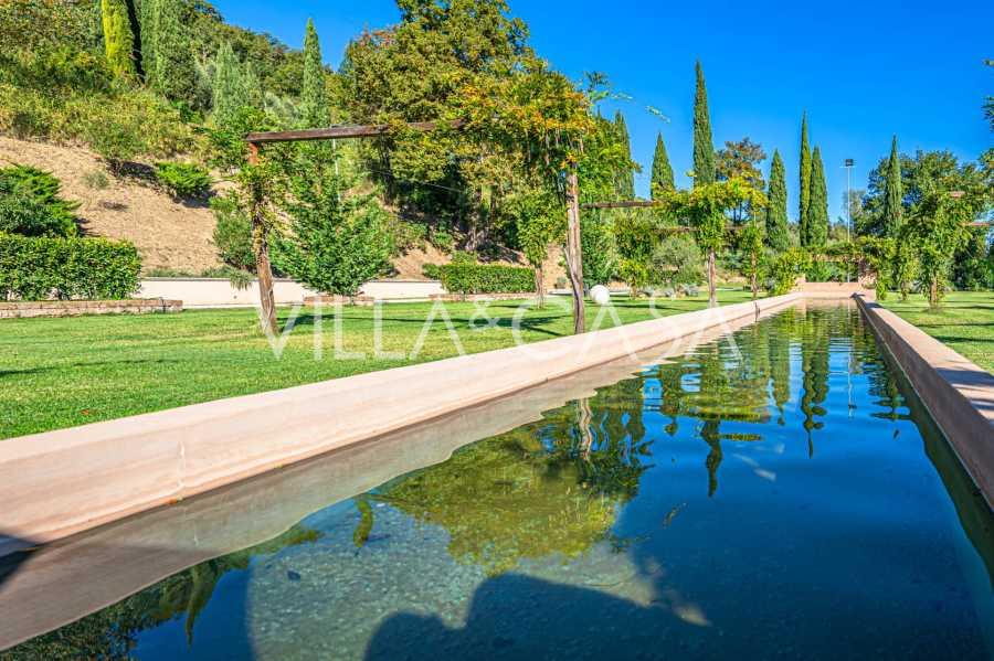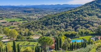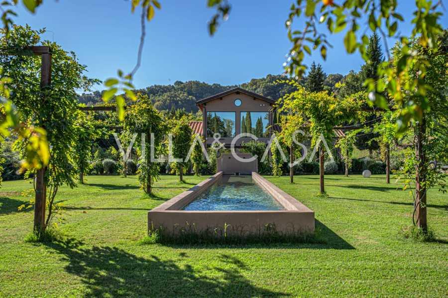 У провінції Вітербо, на височині пагорбів, відкривається приголомшливий вид на долину Тибру. Маєток займає близько 25 гектарів доглянутого парку, створюючи атмосферу повного спокою та усамітнення. Кожен куточок спроектований для комфорту, елегантності та гармонії: сонячні тераси, альтанки, витончені шезлонги біля басейну та тінисті алеї, оточені віковими деревами.