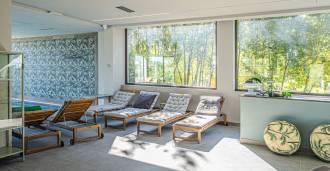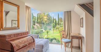 Поруч знаходиться елегантний бар з видом на парк, де можна відпочити за аперитивом або насолодитися тишею серед природи.