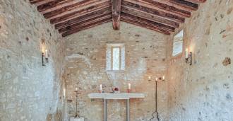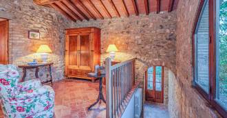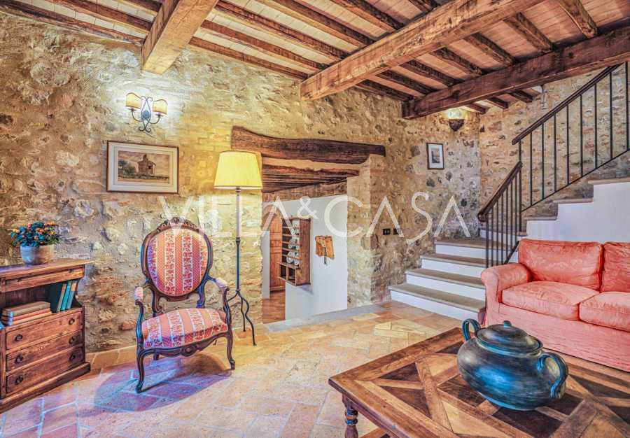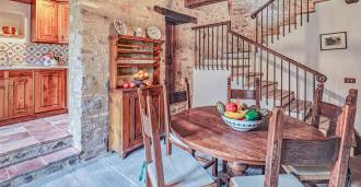 Інтер'єри дбайливо зберігають історичну атмосферу борго: антикварна теракотова плитка, дерев'яні балки ручної роботи, кам'яні стіни та автентичні каміни, об'єднані з сучасними інженерними рішеннями, автономним опаленням і повністю оснащеними кухнями. Кожне приміщення продумане до дрібниць, щоб створювати атмосферу гармонії, затишку та надихаючої розкоші.