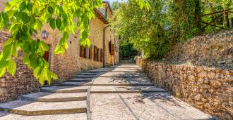 Архітектурний план, що зберіг дух середньовічного поселення, утворює мальовничий ансамбль: кам'яні дворики, аркові лоджії, тераси з видами на долину, старовинні сходи та таємничі провулки, що ведуть до дивовижних видів та усамітнених місць.