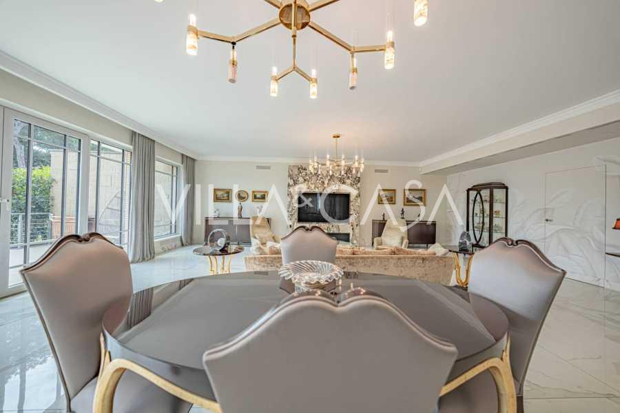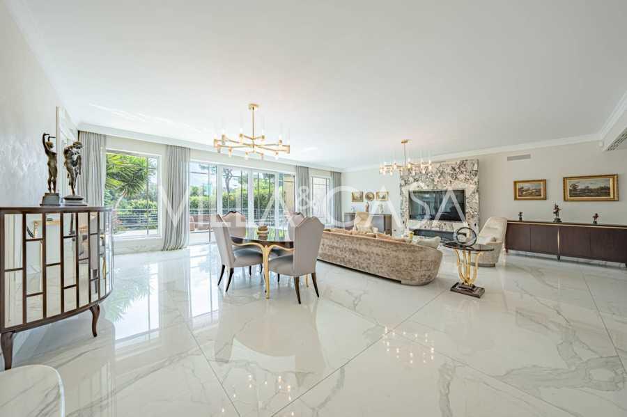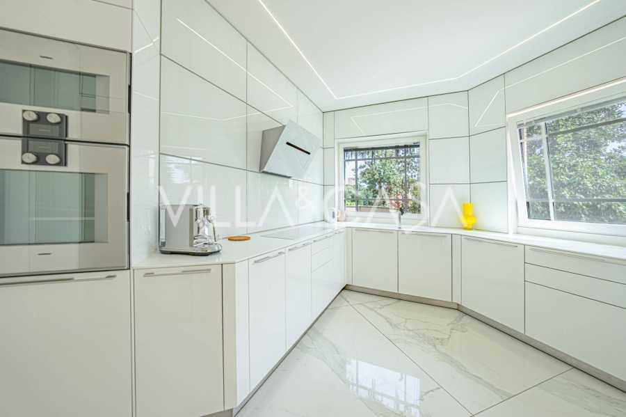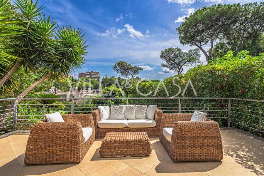 На одній з найпрестижніших вулиць в районі EUR розташована вишукана резиденція, повністю оновлена у 2020 році. Ця вілла поєднує в собі витончену естетику, сучасний дизайн і високий рівень комфорту, створюючи простір, що підходить для найвибагливіших цінителів.