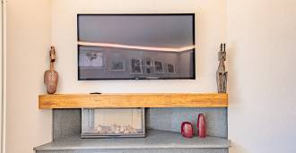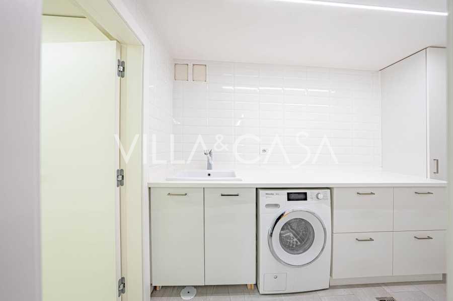 Цокольний поверх: ексклюзивна студія-депенданс з каміном, кухнею відкритого плану і ванною, з виходом на терасу, обладнану літньою кухнею і зоною барбекю. Окремий технічний блок з самостійним входом.