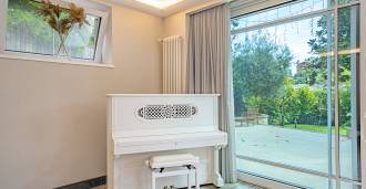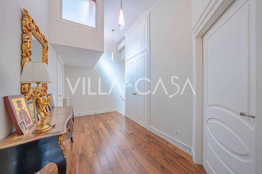 Триповерхова резиденція займає панівну позицію на Віа Марокко з південною сонячною експозицією, оточена зеленню і відкриває захоплюючі види на сади. Історичний стиль гармонійно поєднується з інноваційними технологіями і ретельно продуманою ергономікою внутрішнього простору.