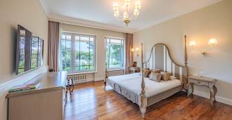 Другий поверх: дві розкішні майстер-сьюти, одна з ванною і джакузі, інша з гардеробною і просторою ванною кімнатою з двома душовими. Додаткове приміщення для гардеробу або комори.