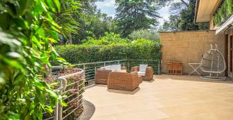 Ландшафтний сад, створений з особливою увагою до деталей, прикрашений рідкісними породами дерев, серед яких велична магнолія і столітня олива. Парадний двір вміщує кілька автомобілів, а також є закритий гараж на одну машину. Ідеальне розташування резиденції поєднує рідкісну тишу і стратегічне місцезнаходження: в пішій доступності знаходяться основні сервіси і зручний виїзд до парку з озером EUR, а також до проспектів Лаурентина і Крістофоро Коломбо. Лише за кілька хвилин можна дістатися до центру Риму.